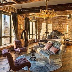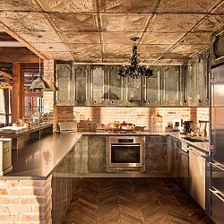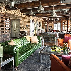 Интерьер наполнен редкими коллекциями из старинных предметов и антиквариата, которые тщательно собирались по всему миру его владельцем Алексом Биркенстоком. Вместе с двумя спальнями и тремя ванными комнатами, винтажный лофт предлагает джакузи и сауну, а также превосходный вид на панорамы Нью-Йорка, статую Свободы и реку Гудзон. Один из двух входов ведет в жилую зону, покрытую мелиорированными деревянными полами из португальского посольства в Париже. Стулья Наполеона III, диваны «Честерсфилд», старинные французские кожаные клубные кресла и освещение в промышленном стиле создают волшебную и вневременную обстановку просторной гостиной. Открытые кирпичные стены добавляют привлекательности лофту, который щедро черпает свое вдохновение из бохо, арт-деко, промышленных и деревенских особенностей дизайна. Тем не менее, самая современная бытовая техника легко уживается в этом старом мире. Каждая комната феноменального пространства украшена европейскими культурными ценностями и редким старинным декором, которые не оставят вас равнодушными.